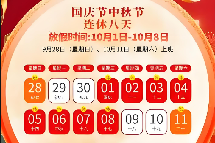 2025年國慶節(jié)、中秋節(jié)連休。根據《國務院辦公廳關于2025年部分節(jié)假日安排的通知》規(guī)定,